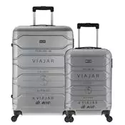2 peças de tamanhos diferentes: mala de bordo (10kg) + mala grande (23kg ou 32kg)